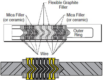 Description: Spiral wound gasket for heat shield is outstanding fire resistance. Combination of graphite filler and mica layers give superior fire safety.Layers of pure mica protect graphite filler and resist oxidation.