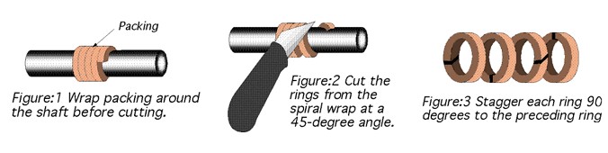 Caution, severe damage can occur to the shaft and stuffing box if you wrap the packing around and around without cutting individual rings.